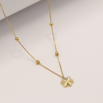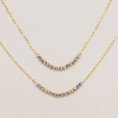 1. عیار طلا: عیار طلا نشان‌دهنده درصد خلوص آن است. برای گردنبندها معمولاً از طلای 18 عیار استفاده می‌شود که تعادلی مناسب بین دوام و درخشش دارد.