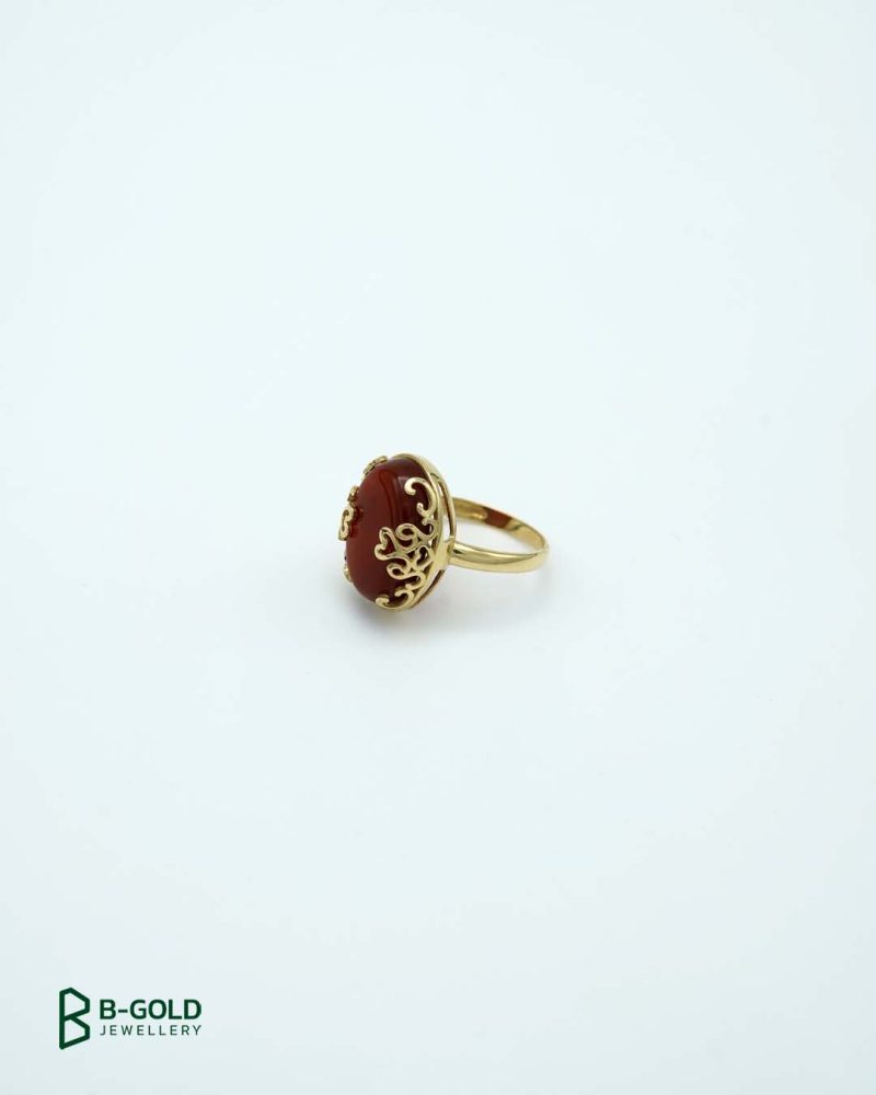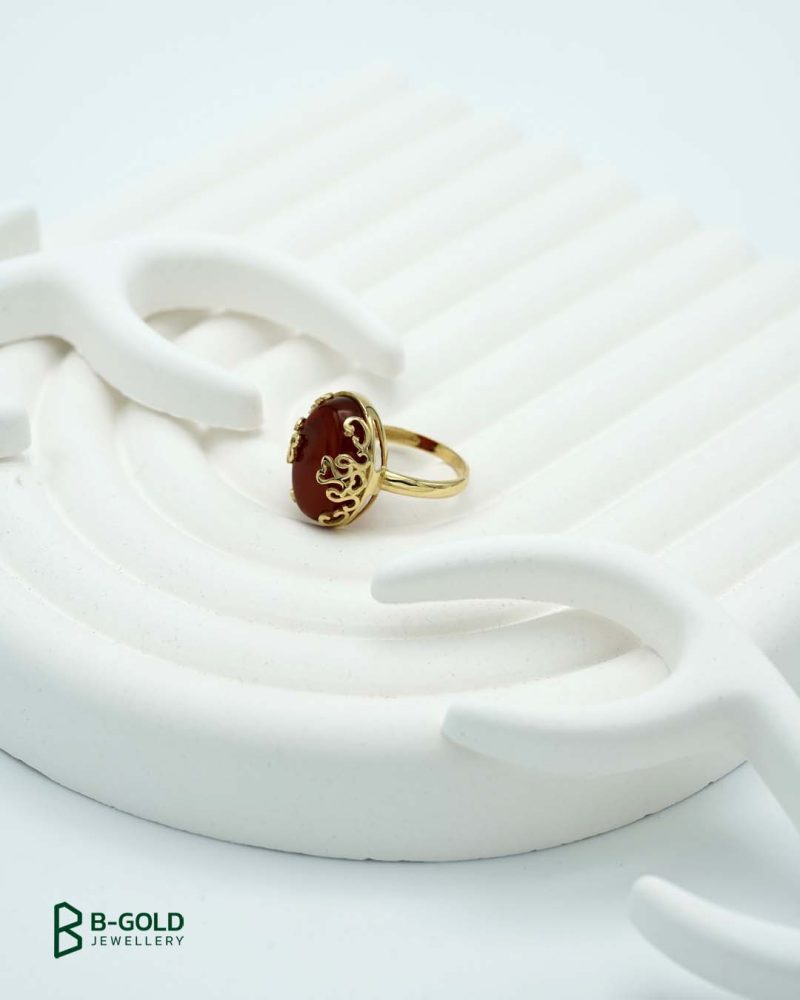 - سنگهای تزئینی: این انگشتر دارای سنگ تزئینی عقیق قرمز است.