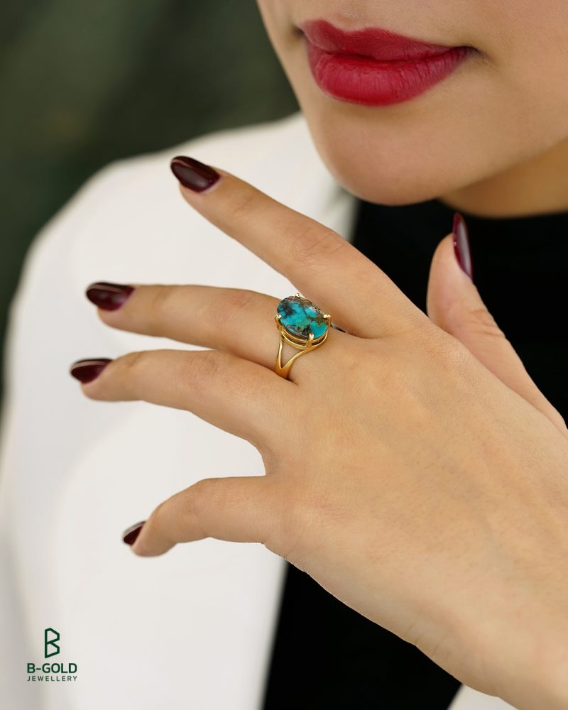 - سنگهای تزئینی: این انگشتر دارای سنگ تزئینی فیروزه است.