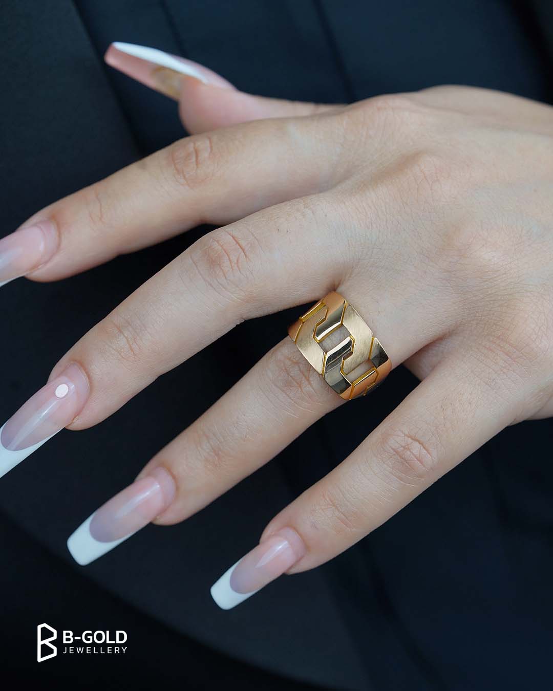 - طراحی: انگشتر میرالا با طراحی مدرن و هنری خود، به زیبایی با جزئیات دقیق و خلاقانه ارائه شده است. طراحی این انگشتر معمولاً شامل الگوهای زیبا و شیک است که به آن جلوهای خاص و منحصر به فرد میبخشد. ممکن است شامل اشکال هندسی، خطوط منحنی یا الگوهای دیگری باشد که به زیبایی در این انگشتر تجسم یافته است.