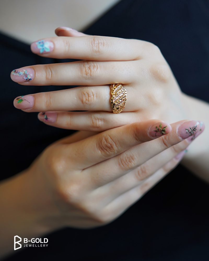 - دستهای پهنتر: برای دستهای با قاعده وسیعتر، انتخاب انگشتر با طراحی متناسب و بدون جزئیات خیلی شلوغ میتواند مناسب باشد. انگشتر ایوا طرح ساهی با طراحی تعادلیافته، میتواند به خوبی با این نوع دستها هماهنگ شود.