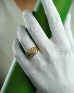 - طراحی: انگشتر تلما با طراحی مدرن و هنری خود، به زیبایی با جزئیات دقیق و خلاقانه ارائه شده است. طراحی این انگشتر معمولاً شامل الگوهای زیبا و شیک است که به آن جلوهای خاص و منحصر به فرد میبخشد. ممکن است شامل اشکال هندسی، خطوط منحنی یا الگوهای دیگری باشد که به زیبایی در این انگشتر تجسم یافته است.