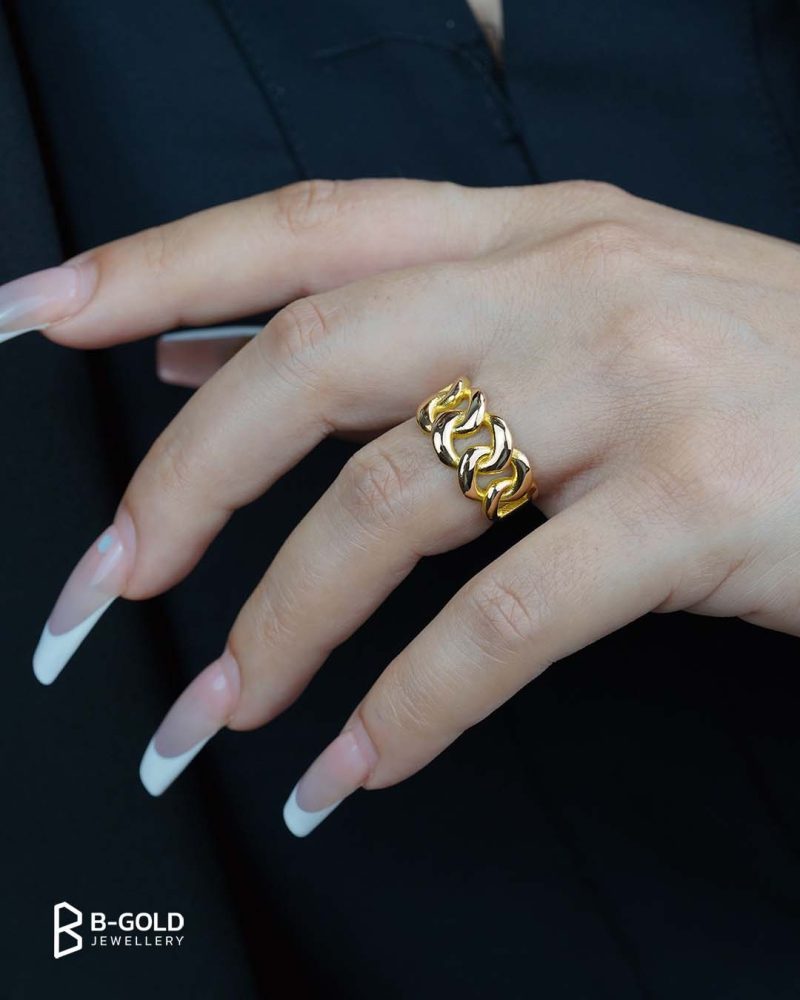 - جنس: انگشتر یسنا از طلای 18 عیار با کیفیت و خالص ساخته شده است. استفاده از طلا بهعنوان متریال اصلی، به انگشتر درخشندگی و دوام بالایی میبخشد و همچنین زیبایی آن را دوچندان میکند.