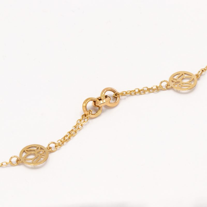 دستبند دورنیکا Dornika کد 40221 با طراحی مینیمال و زنجیر نازک، جلوهای از لطافت و سادگی را در کنار درخشش طلای اصیل به نمایش میگذارد. آویزهای دایرهای با انتهای طرح گل، حالوهوایی دخترانه و دلانگیز به آن دادهاند و باعث میشوند این دستبند در هر نوری بدرخشد. انتخابی ایدهآل برای کسانی که به جزئیات کوچک اما چشمنواز اهمیت میدهند.