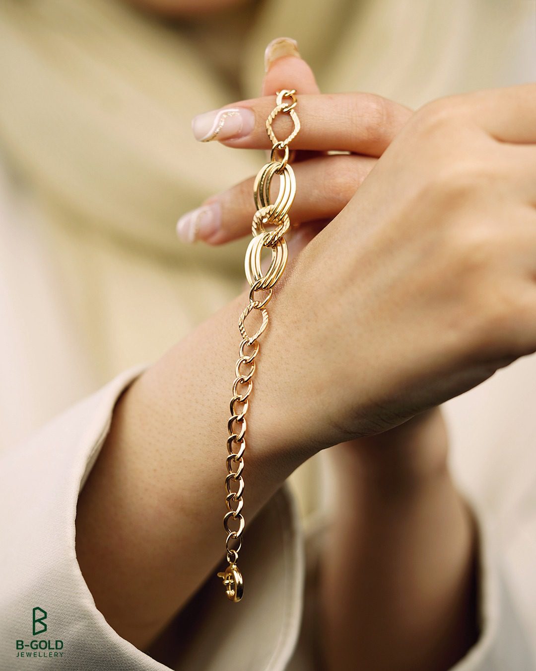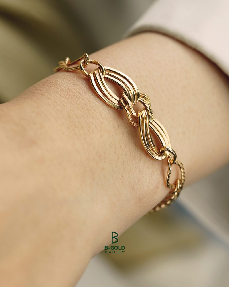 - جنس: دستبند از طلای 18 عیار با کیفیت و خالص ساخته شده است. استفاده از طلا بهعنوان متریال اصلی، به دستبند درخشندگی و دوام بالایی میبخشد و همچنین زیبایی آن را دوچندان میکند.