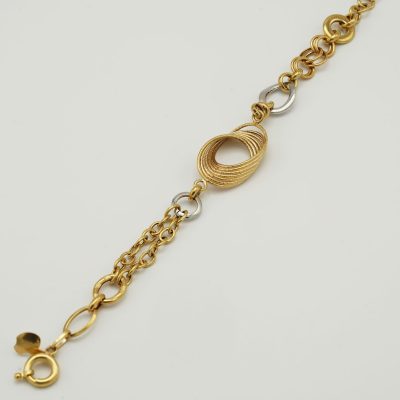 - جنس: دستبند از طلای 18 عیار با کیفیت و خالص ساخته شده است. استفاده از طلا بهعنوان متریال اصلی، به دستبند درخشندگی و دوام بالایی میبخشد و همچنین زیبایی آن را دوچندان میکند.