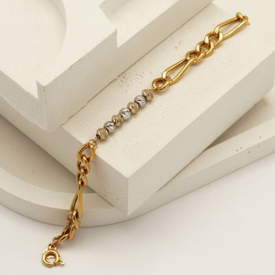- جنس: دستبند از طلای 18 عیار با کیفیت و خالص ساخته شده است. استفاده از طلا بهعنوان متریال اصلی، به دستبند درخشندگی و دوام بالایی میبخشد و همچنین زیبایی آن را دوچندان میکند.