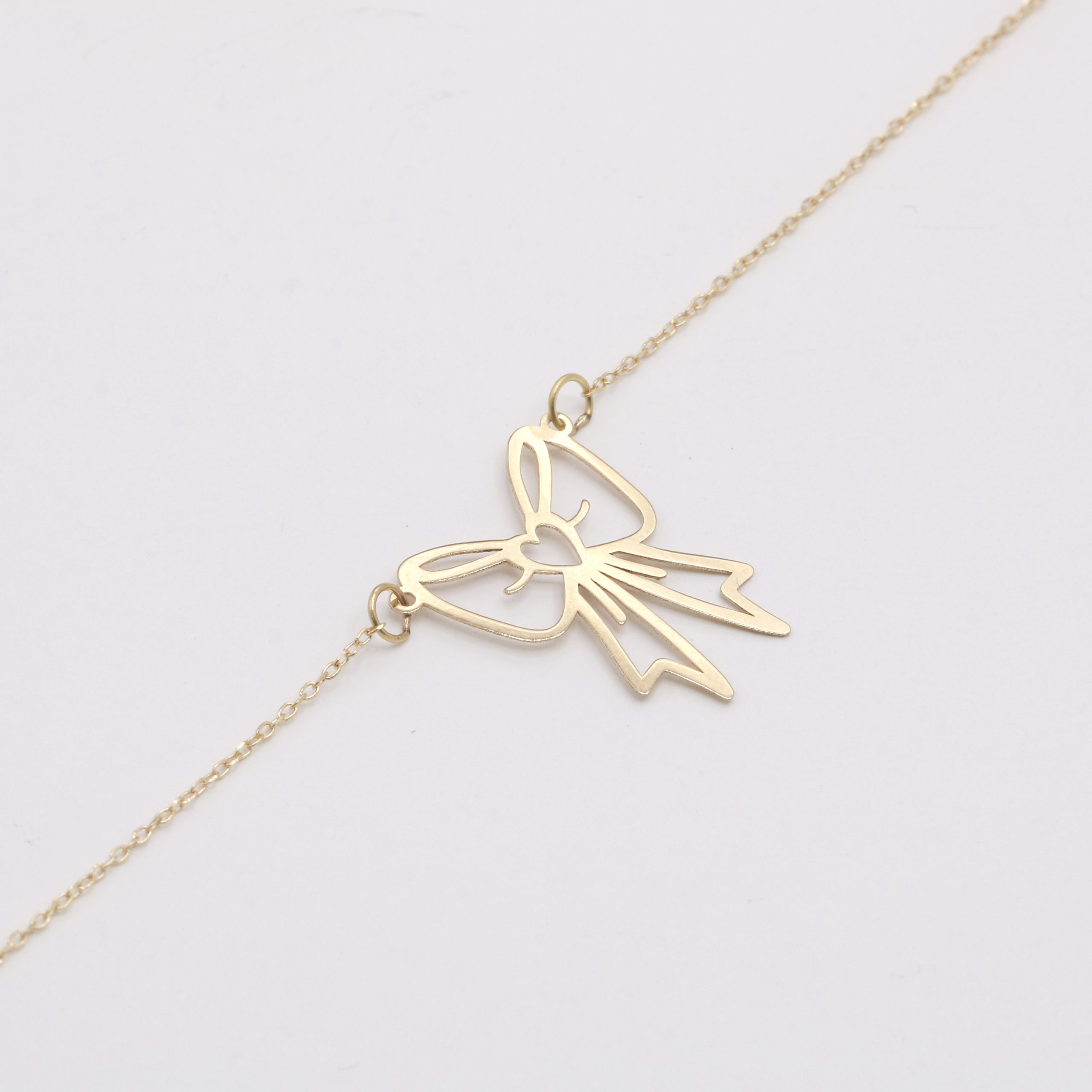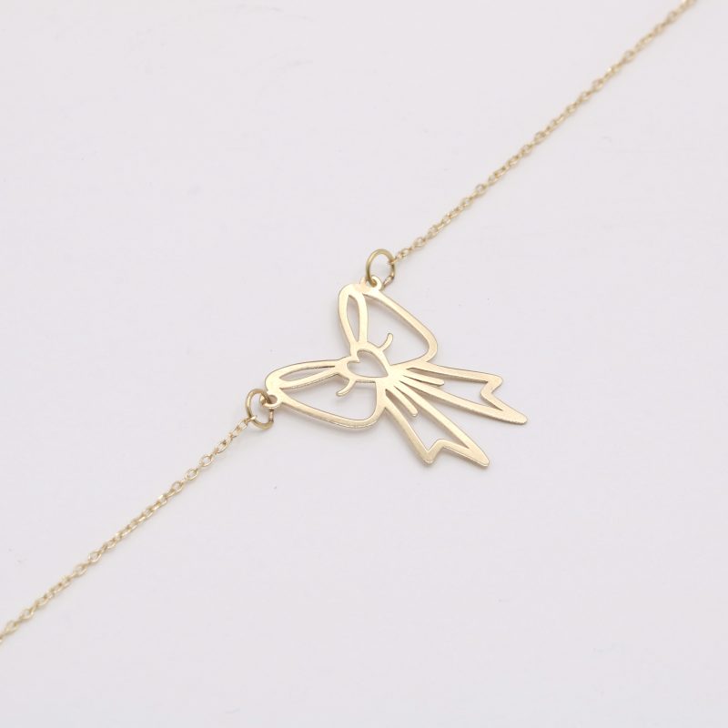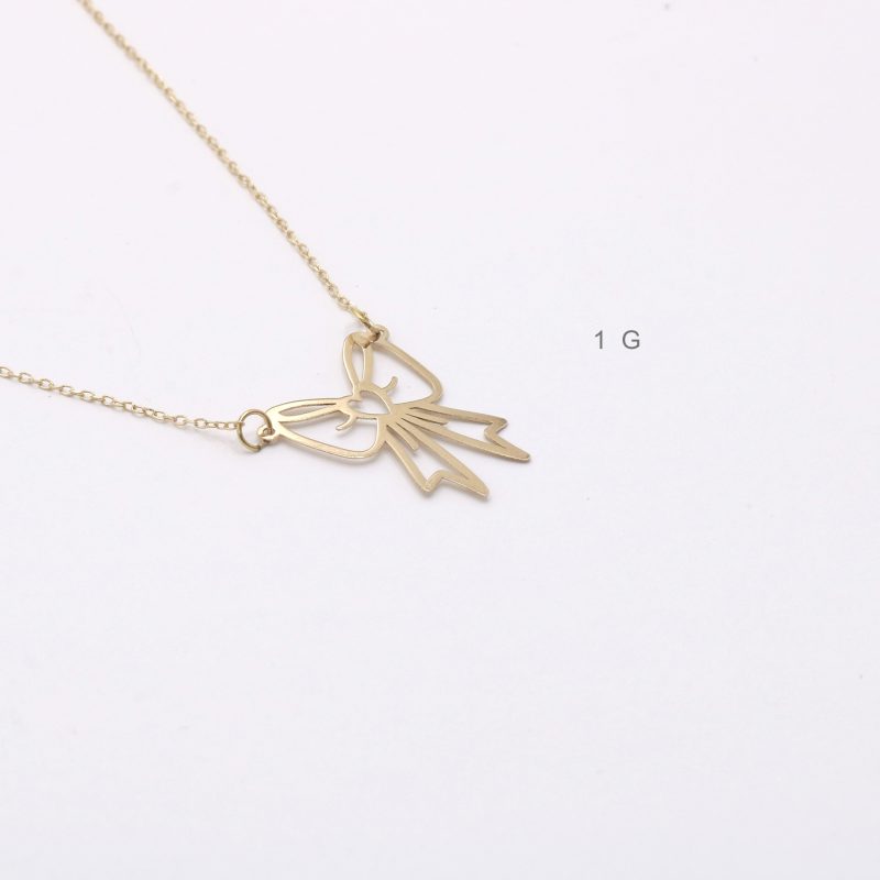گردنبند پاپیلون Papillon کد 20094 این گردنبند با طراحی هنرمندانه و مدرن پاپیون، جلوهای دلنشین و منحصربهفرد به ظاهر شما میبخشد و سرمایهای ارزشمند برای سالیان متمادی خواهد بود. درخشش طبیعی و گرم طلای خالص، زیبایی بینظیری به این گردنبند بخشیده و حس لوکس بودن و اصالت را القا میکند. طراحی باز و خطوط زیبای پاپیون، سبکی معاصر و جذاب را به این اکسسوری نفیس هدیه کرده است. طول مناسب زنجیر، قرارگیری ایدهآل پلاک پاپیون را بر روی گردن تضمین میکند و به راحتی با انواع پوششها ست میشود.