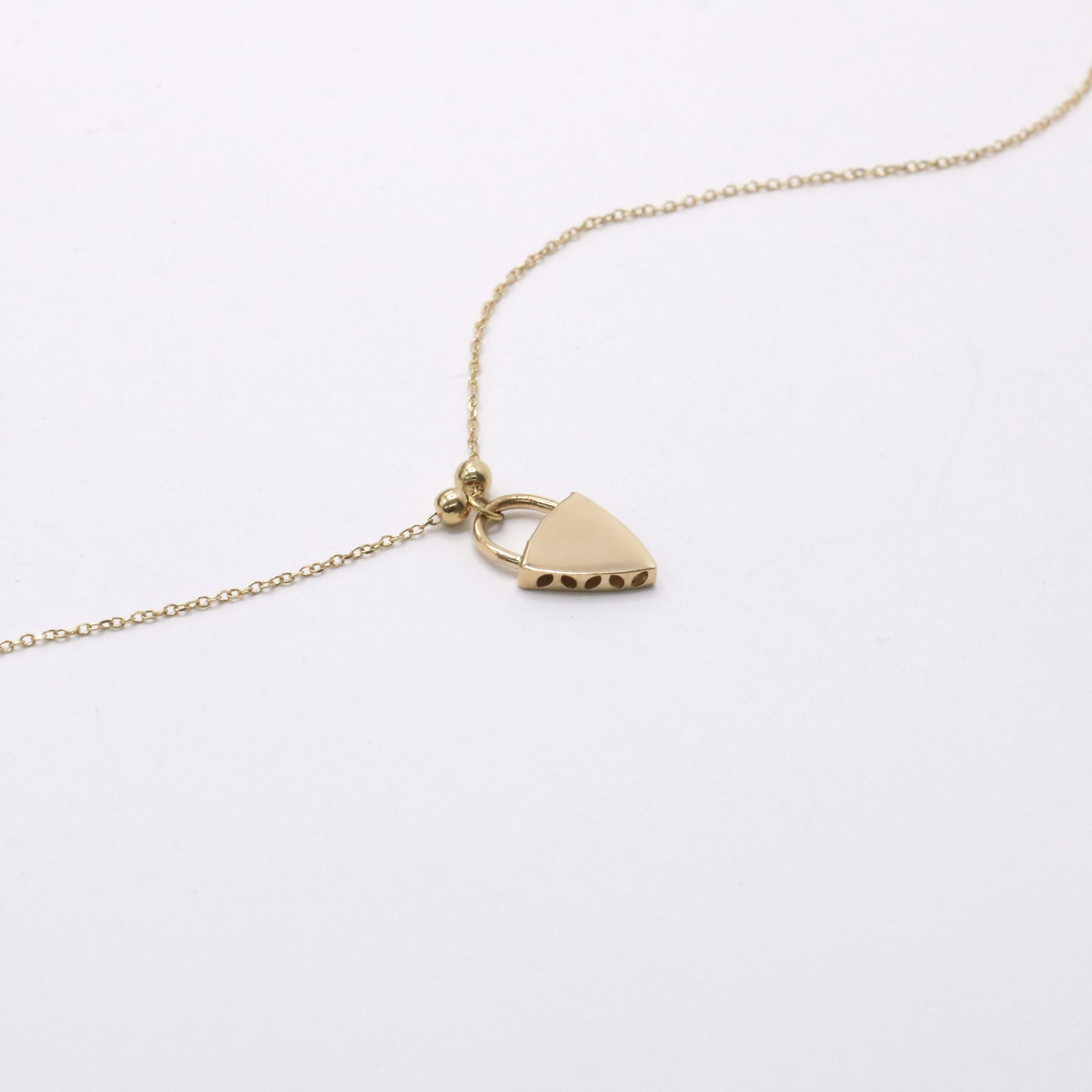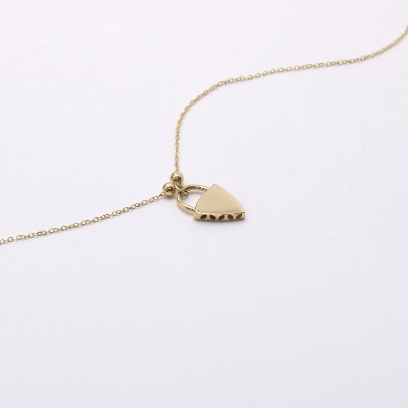 گردنبند وِترا Vetra کد 20099 ˓ ( برگرفته از واژه لاتین Vetera به معنای محافظ یا نگهبان ) با طراحی مدرن و الهام گرفته از فرم قفل و خطوط مینیمال ˓ نمایانگر قدرت ˓ استقلال و سبک متفاوت است . آویز مثلثی این گردنبند با ظرافت در دل زنجیری ظریف نشسته و حس جسارت و لطافت را در کنار هم به نمایش می گذارد .