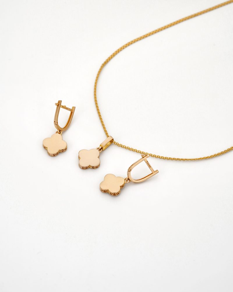 نیمست طلای فلورا flora کد 80191 طرح دیگری از برند ونکلیف ، نمادی از خوششانسی و زیبایی مینیمال . سطح صیقلی و براق قطعات ، جلوهای بینقص و در عین حال ساده به این کار داده است. ترکیب هماهنگ گردنبند و گوشوارهها، انتخابی شیک برای خانمهایی است که به دنبال طلاهای ظریف و همیشهمد روز هستند.