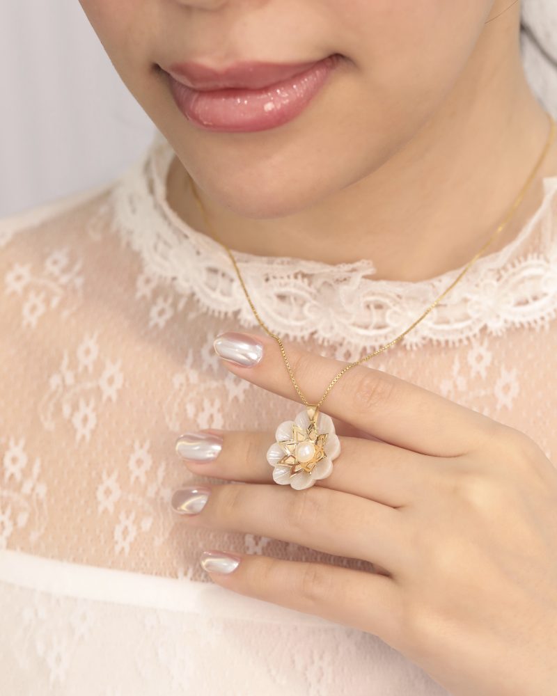 پلاک لیویا Lyvia کد 50243 ، آمیزهای است از لطافت شکوفهها و هنر طراحی معاصر. گلبرگهای ظریف صدفی در آغوش فرم هندسی ستارهای از طلا قرار گرفتهاند و در دل خود، مرواریدی درخشان را جای دادهاند که نماد خلوص و آرامش است . لیویا با رنگبندیهای متنوع، از سفید مرواریدی تا صورتی ملایم و خاکستری صدفی، انتخابی ایدهآل برای استایلهای مینیمال و درخشان است. این پلاک نهتنها یک زیور، بلکه نشانی از شخصیت لطیف و درخشان شماست.