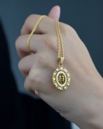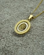 - طراحی: طراحی منحصر به فرد و خاص این پلاک با الگوها و نمادهای شناختهشده ورساچه، آن را به یک قطعه جواهر هنری تبدیل کرده است. این طراحی نه تنها زیباست، بلکه هویت برند ورساچه را به خوبی نمایان میسازد. این پلاک دارای دو قاب در پشت و روی پلاک دارد که با چرخش بخش وسط زیبایی دو چندانی میگیرد.